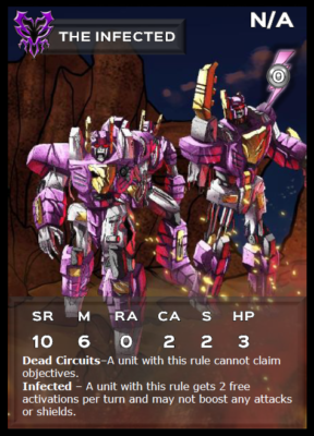 The Infesters themselves are the final corrupted form of what happens when a Bot rejects the cleansing influence of the One. Of all the factions in the Bot War the infesters have little thought. Well outside the basic needs of feeding. They do hold a slight lean for destruction too in accordance with the laws of nature that everything is degrading.