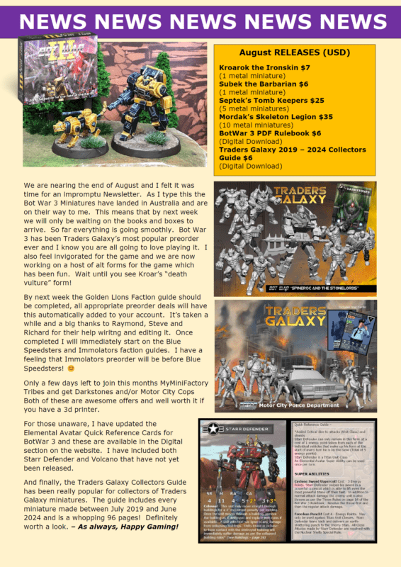 I have updated all the Elemental Avatar Quick Reference cards on the webstore as a free PDF download. Apologies for the delay on this one. I am slowly working my way through various tidy ups from BW2 Turbo to BW3. FAQ’s next although BW3 only has Regenerate at this stage. Grab them here –https://tradersgalaxy.com.au/product/elemental-avatar-quick-reference-cards/
