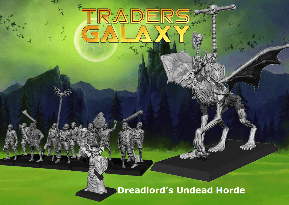 We have just launched our new fantasy Tribes tier on MMF. Check it out here – https://www.myminifactory.com/users/Traders-Galaxy#/ September is the awesome Dreadlord on Winged Wendigo (Wightlord on Winged Nightmare) leading a unit of 10 zombies.