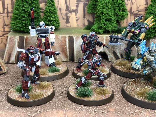Whilst it’s true that the actual stats for the characters have not changed there are some subtle extras bestowed for taking a Red Cannoneers force. By far the biggest thing is that for Red Cannoneers short range is extended to 11″. This tiny change is absolutely a huge deal in Bot War as many ground based forces have a movement of 7″ which makes their ram attack 10″. Being able to boost shots at an enemy without fear of a ram attack counter is really handy.